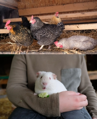 Auf dem gesamten Gelände leben zusätzlich noch 7 Ziegen, mehrere Meerschweinchen, Kaninchen und Hühner, die winterfeste Stallungen und Freilaufgehege haben.